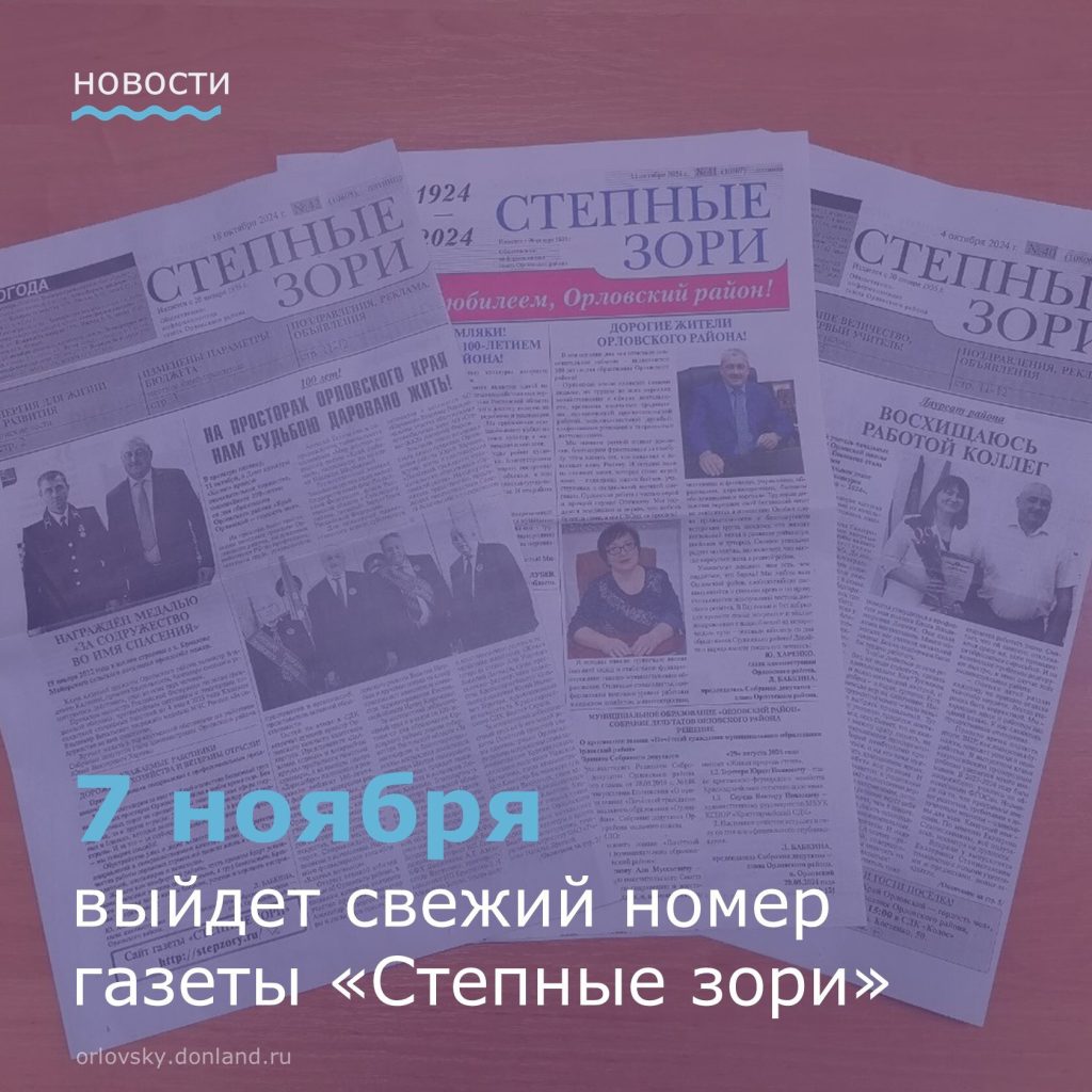 В свежем номере районной газеты «Степные зори» от 7 ноября читайте:
