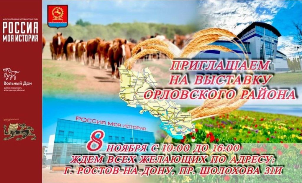 8 ноября с 10:00 до 16:00 состоится выставка достопримечательностей и достижений Орловского района в рамках Дня муниципальных образований Ростовской области на базе исторического парка «Россия – моя история».