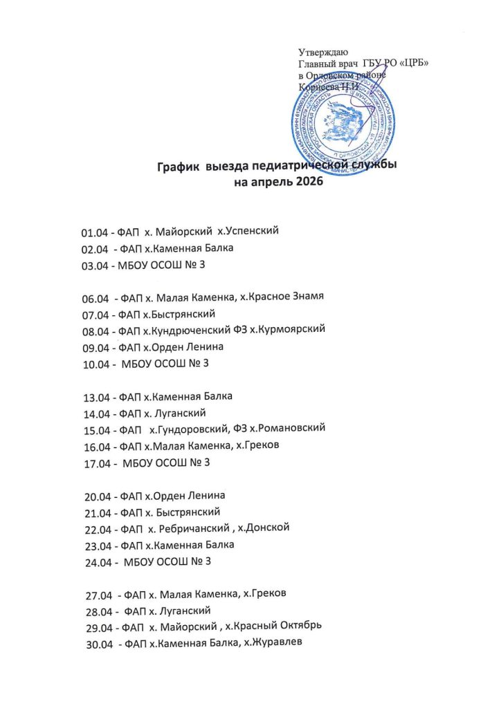 Главная » #Здоровье » График выезда педиатрической службы в Орловском районе в апреле График выезда педиатрической службы в Орловском районе в апреле На чтение мин Просмотров 12 Опубликовано 05.04.2026