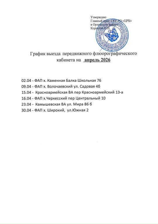 Главная » #Здоровье » График выезда передвижного флюорографического кабинета в Орловском районе в апреле График выезда передвижного флюорографического кабинета в Орловском районе в апреле #Здоровье На чтение мин Просмотров 10 Опубликовано 05.04.2026
