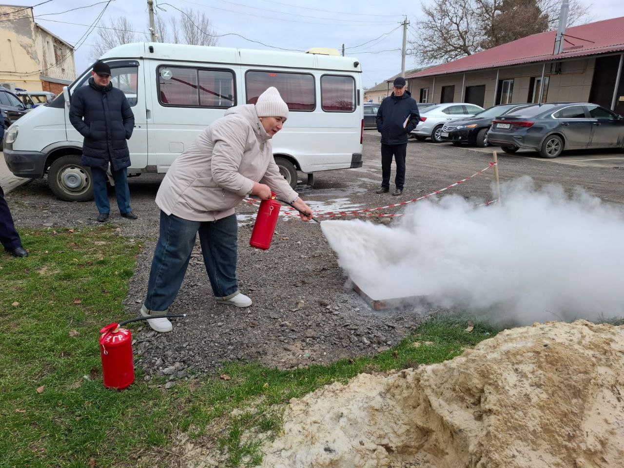 После того, как в зале всем участникам раздали памятки ВДПО о правилах проведения новогодних праздников, во дворе РДК показали, как правильно пользоваться огнетушителем. Проверить свой опыт смогли все желающие.