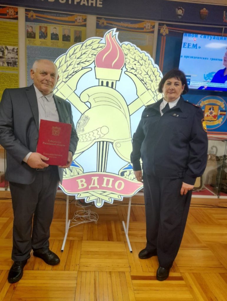 Председатель ВДПО Ростовской области Пилипец В.В. выразил искреннюю благодарность добровольцам благодарственными письмами: