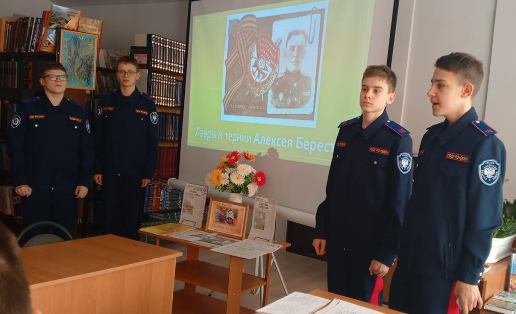 Кадеты узнали о жизни и подвиге человека необыкновенной судьбы, относящегося к одному из самых героических поколений в истории нашей Родины. Жизнь и судьба Алексея Береста тесно связана и с нашим Орловским районом,где он некоторое время работал в Красноармейской и Островянской МТС.