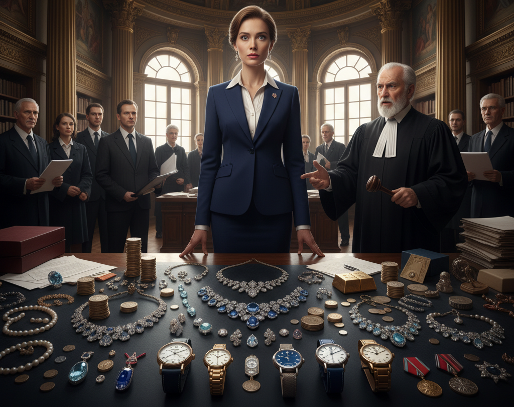 Также в конкурсную массу должны быть переданы 717 драгоценных камней, находящихся в составе изделий, среди которых — 219 бриллиантов, 435 сапфиров и 63 изумруда, а также 6 055 топазов. Помимо этого, по ходатайству финансового управляющего Игоря Овчинникова, суд постановил изъять у Светлицкой медали и монеты из металлов «белого и желтого цветов», золотые и серебряные слитки по 50 граммов. Сдать придется и коллекцию часов, включающую три экземпляра Breguet, две модели Ulysse Nardin, а также Blancpain, Audermars Piguet, Van Der Bauwede Magnum и Daniel Roth.