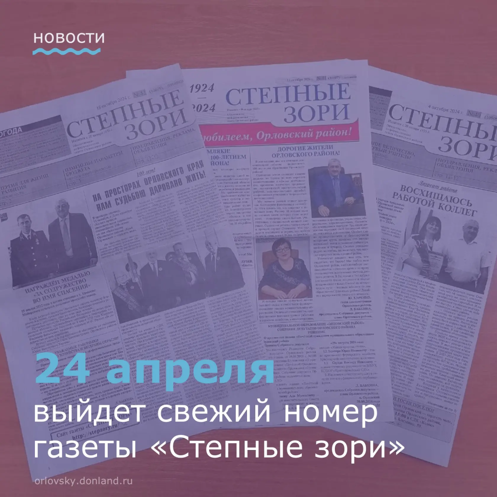 В свежем номере районной газеты «Степные зори» от 24 апреля читайте: