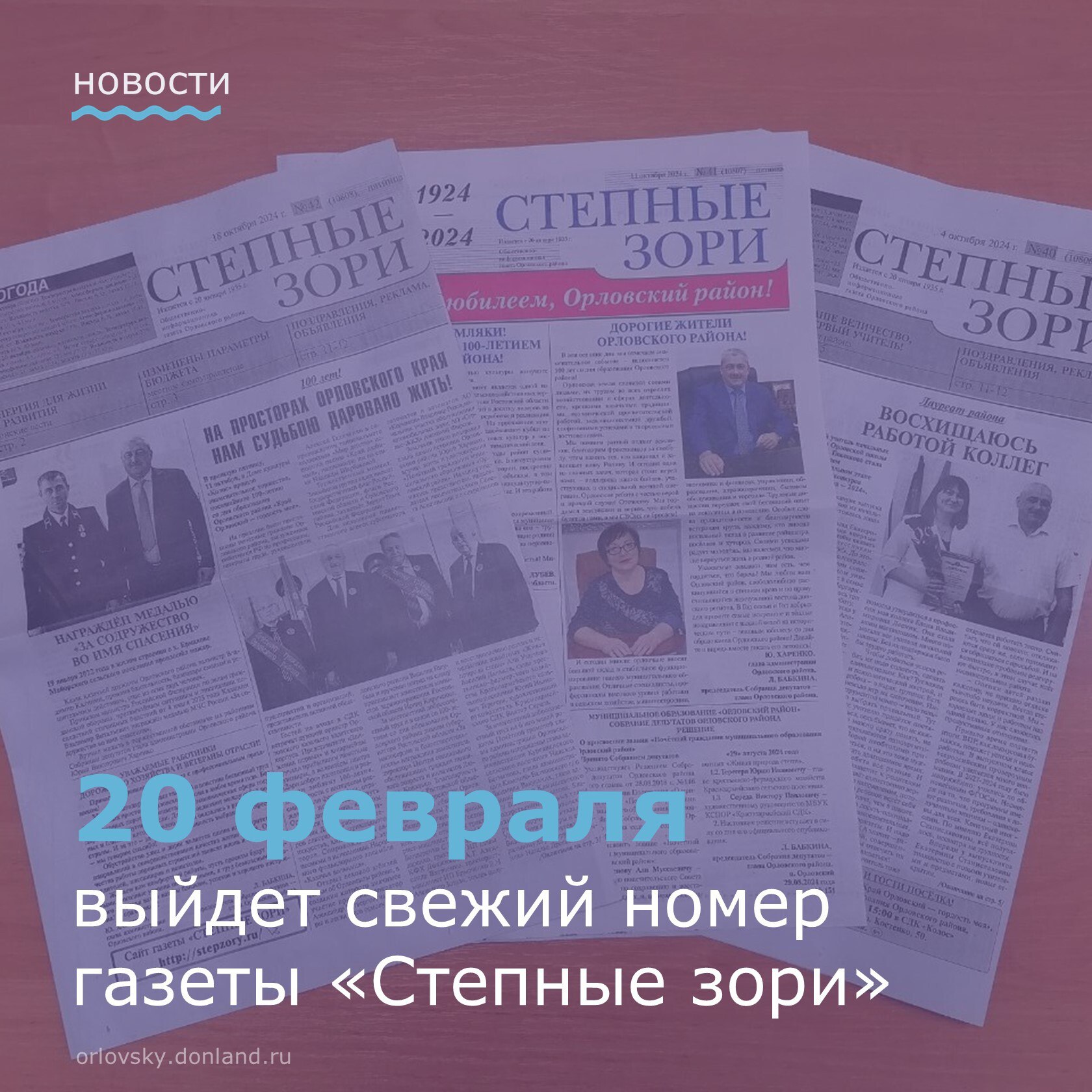 В свежем номере районной газеты «Степные зори» от 20 февраля читайте: