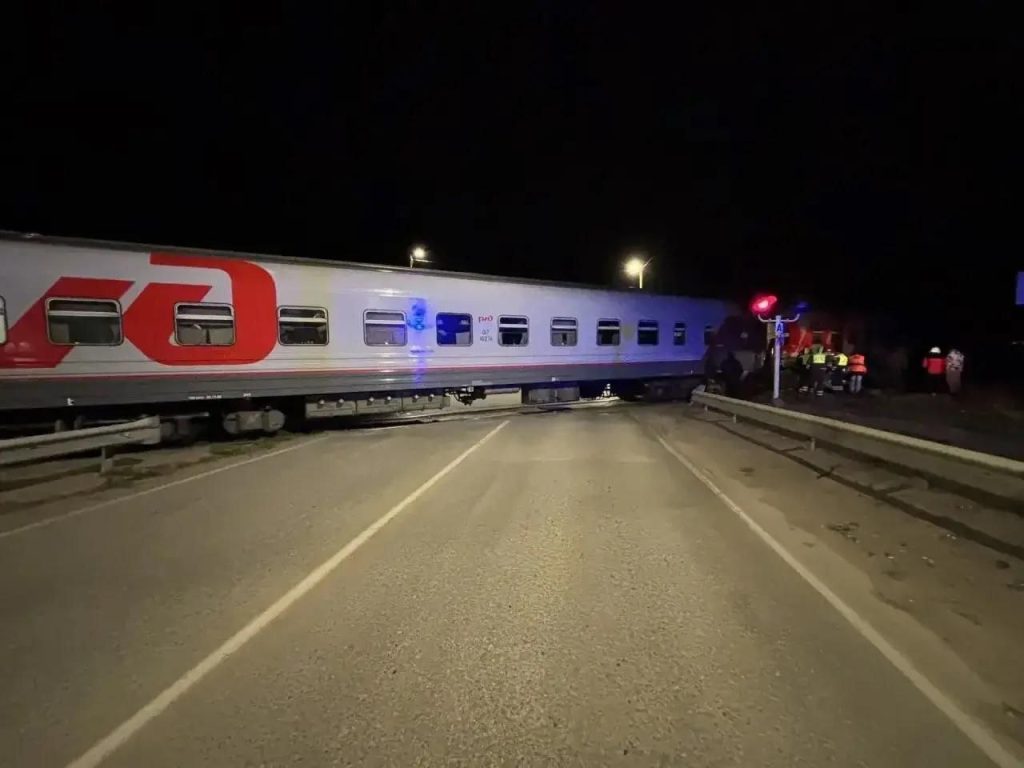 Машинист заметил машину и пытался остановить поезд, но столкновения избежать не удалось. Пассажиры и экипаж не пострадали, движение поездов идет по расписанию.