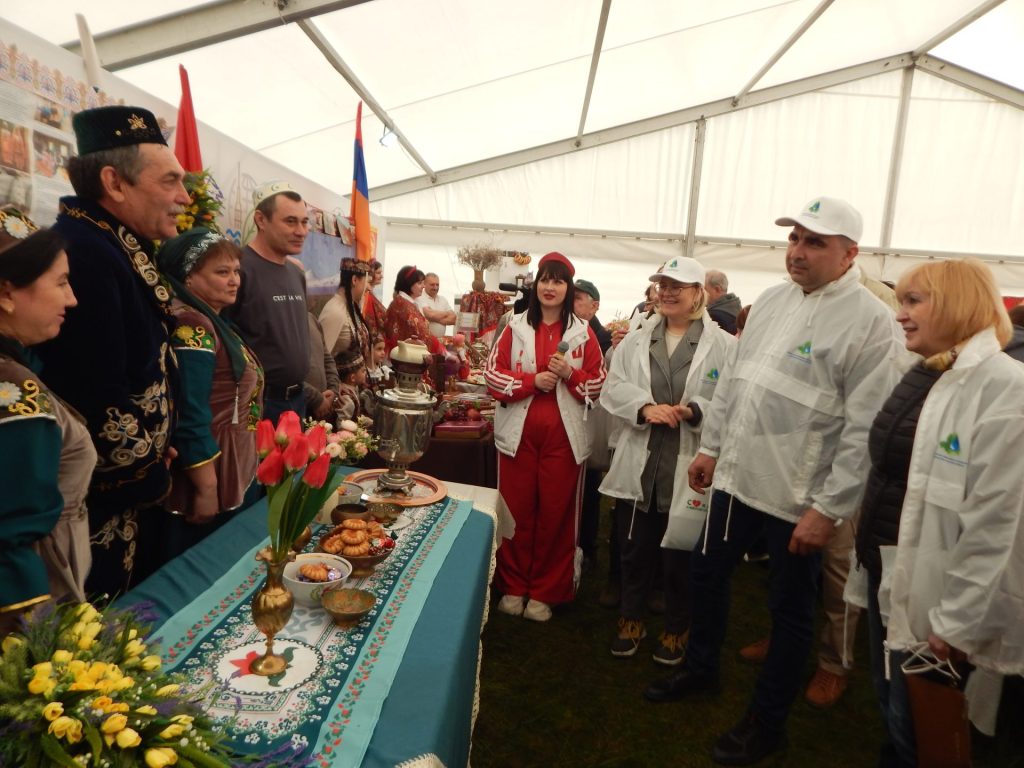 Считанные шаги – и гости оказывались… в Армении, ещё чуть-чуть – и вот он, Татарстан. Землячества откликнулись на просьбу организаторов фестиваля и привезли для выставки домашнюю утварь, предметы быта, книги и фотографии, рассказывающие об истории республик. На столе у татар возвышался самовар – символ семейного тепла и уюта.