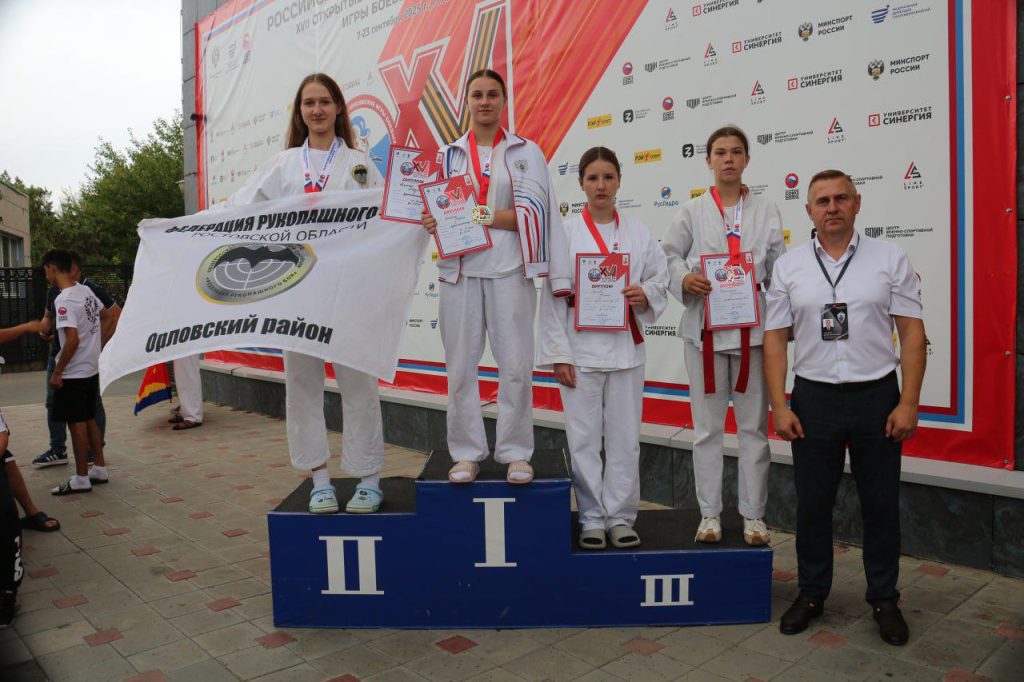 С 7 по 10 сентября проходили состязания по рукопашному бою. В них участвовали 400 спортсменов, среди которых и юные орловчане Марина Крячко, Мария Тепикина и Анна Безымянная спортивного клуба «Ермак» в составе сборной Ростовской области.